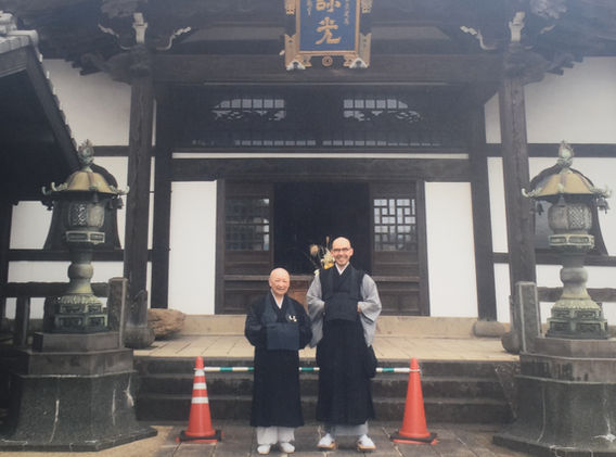 La Venerable Jisen Oshiro Roshi se ordenó de monja del Budismo Soto Zen en el año 2001 en el Templo Mirokuji en Hiroshima, Japón. Recibió la transmisión del Ven. Saito Hokan Roshi, Abad del monasterio de formación para monjes Kotaiji en Nagasaki, Japón.